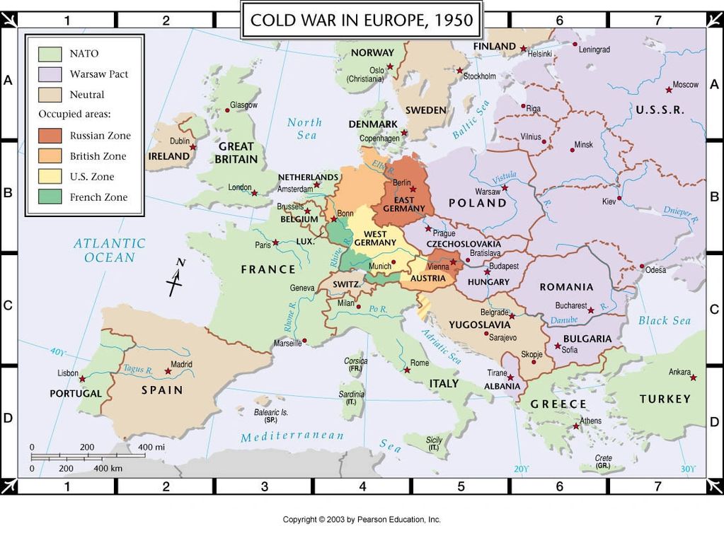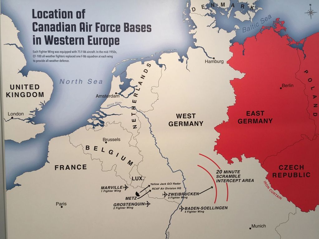 The Cold War map of Europe prior to the formation of Canada's No. 1 Air Division.